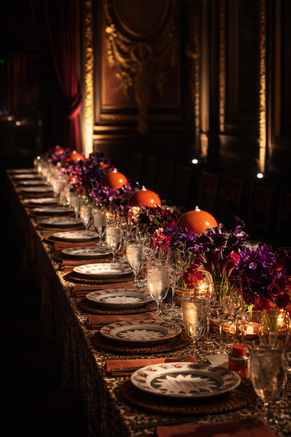 Weddings designed for cultural institutions, luxurious and spacious events marked by wild beauty held together with restraint. An experience that feels intellectual, rare, and deeply considered.